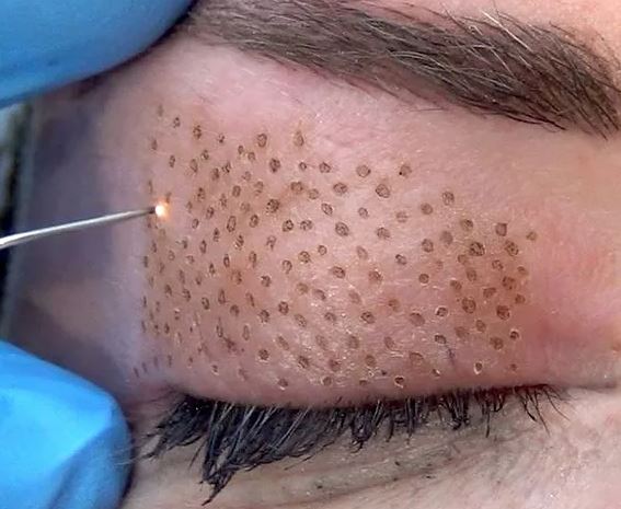 Les croûtes vont mettre entre 1 et 2 semaines pour tomber et laisser place à une peau lisse mais rouge au début. Cette rougeur est facilement maquillable et le patient peut reprendre ses activités sans visibilité du traitement au bout de 15 jours grâce à l’application d’un correcteur de teint.